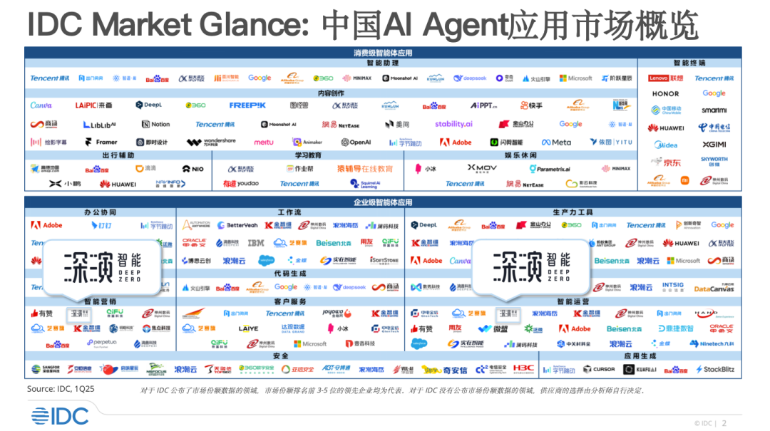 近日,国际数据公司(IDC)正式发布了《IDC Market Glance:中国 AI Agent 应用市场概览,1Q25》(Doc#CHC53057625,2025 年 3 月)研究报告,尊龙凯时智能凭借在 AI 应用领域多年的经验沉淀,以及在 AI 智能体的全方位战略布局,成功入选了报告「智能营销」与「智能运营」两大核心板块。